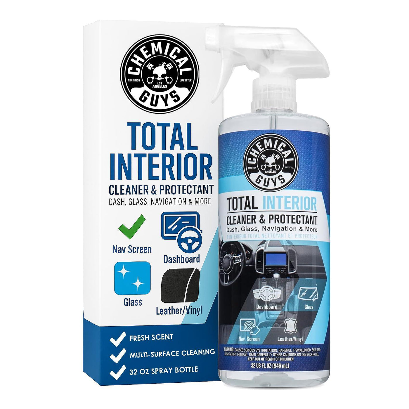 - ONE CLEANER TO RULE THEM ALL - Rather than use separate cleaners for leather, vinyl, plastic, carpet, cloth, glass, and wood, Chemical Guys developed Total Interior Cleaner & Protectant; with just one product, you can now clean and protect virtually all interior surfaces! Now in a Bigger & Better size, 32 oz!
