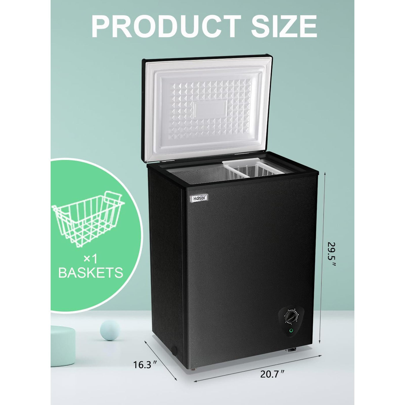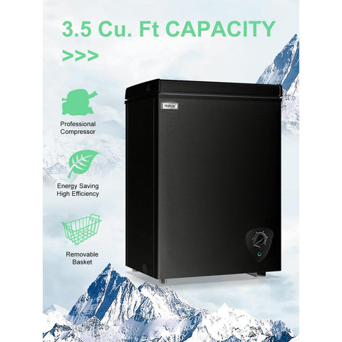 - SPACE SAVING COMPACT FREEZER - 3.5 cu.ft capacity suits your kitchen, apartment, office, bar, college dorm, etc. Keep food cold and fresh all the time. Product size:20.7”(W)*16.3”(D)*29.5”(H).