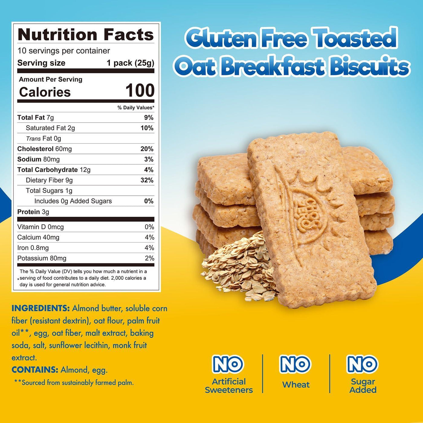 - 9g prebiotic fiber, 3g protein and only 100 calories per 3 biscuit serving size