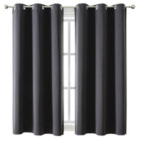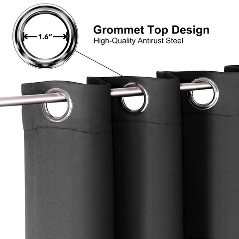 - SET DETAILS: 2 charcoal gray curtains per package. Each panel measures 42 inch wide by 63 inch long with 6 silver metal grommets (1.6 inch inner diameter) on top, easy to install and slide.