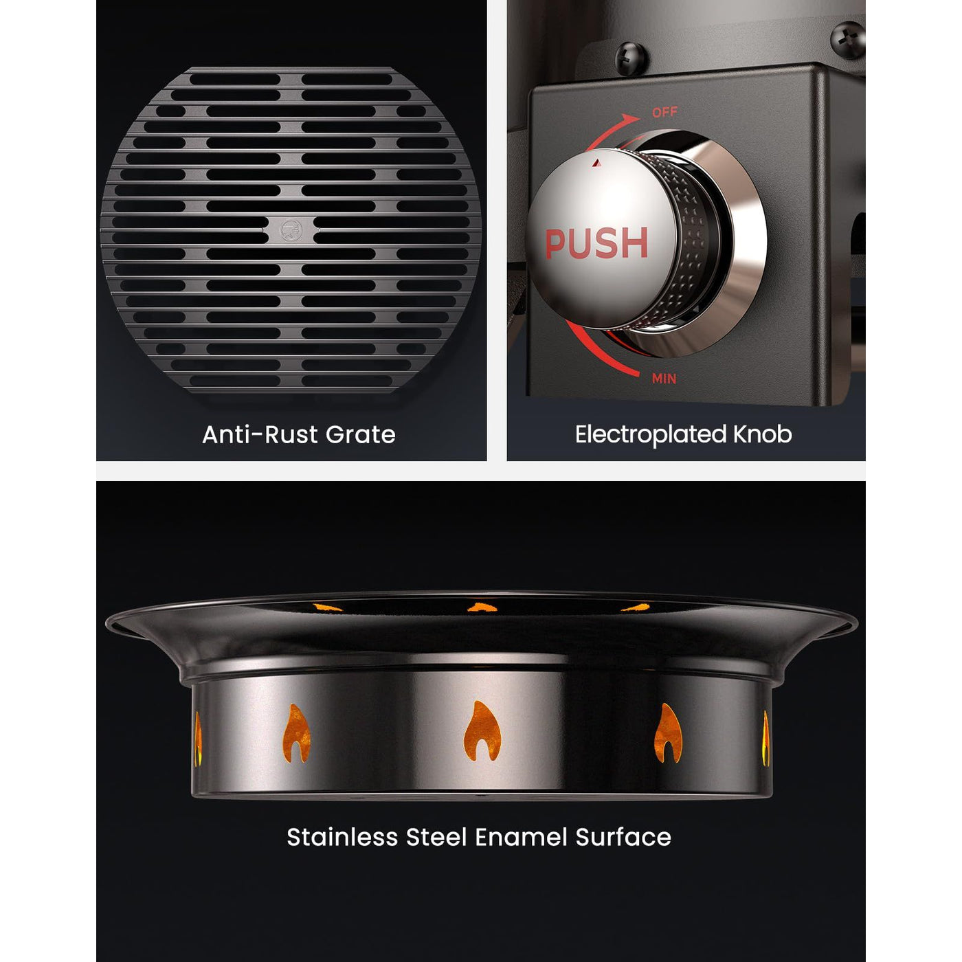 - Cast Iron Grate: The propane fire pit includes a rust-proof grate for long-lasting durability. Heat food or liquids in a pot or kettle (not included) while enjoying the outdoors in your backyard, patio, or camping. NOTE: Avoid direct contact between food and grill.