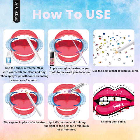 - No need to prepare extra tooth gem supplies accessories, our tooth gems kit for teeth comes with all the tools you need and .instructions on how to put them on