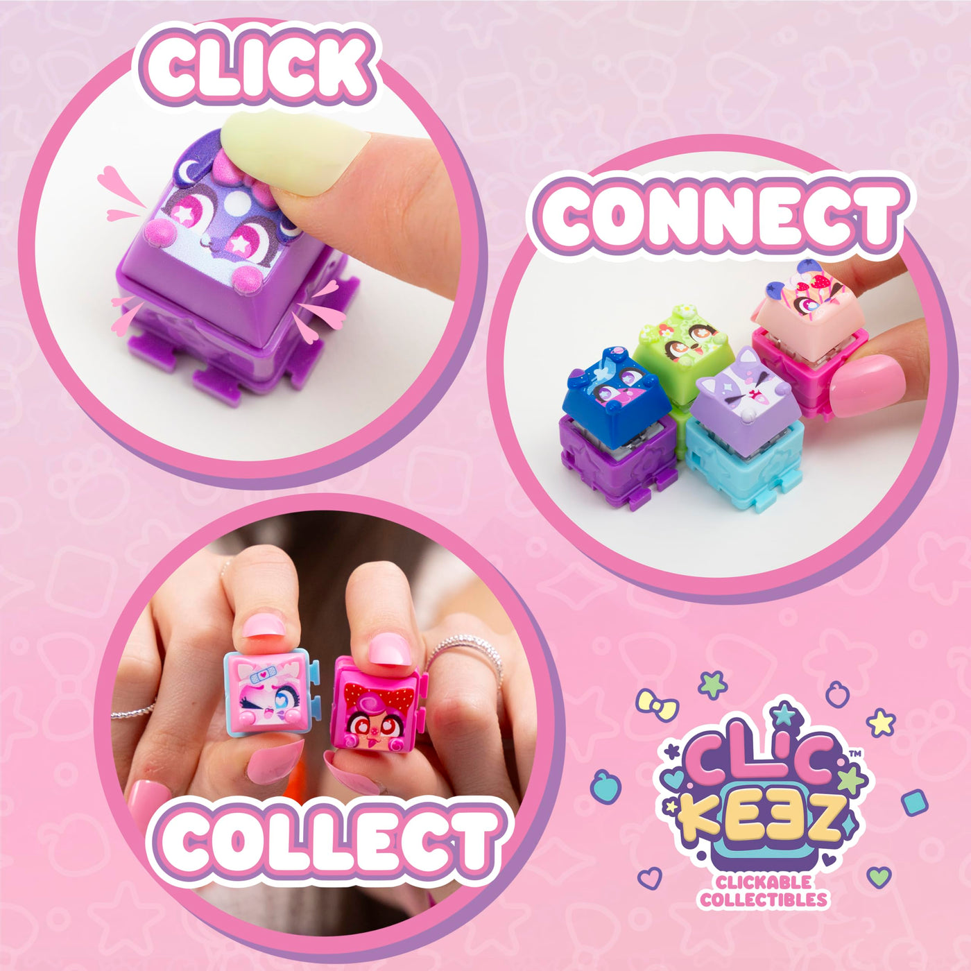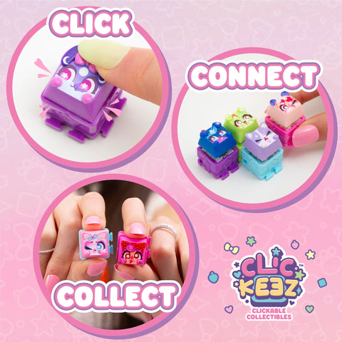 - KEYBOARD CLICKING FUN: Add all your Clickeez into the keyboard-shaped collector case, and type away!
