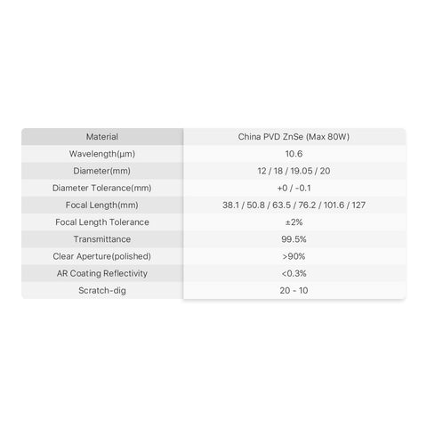 - Material: High Quality PVD Znse,compatible power: 30W-100W