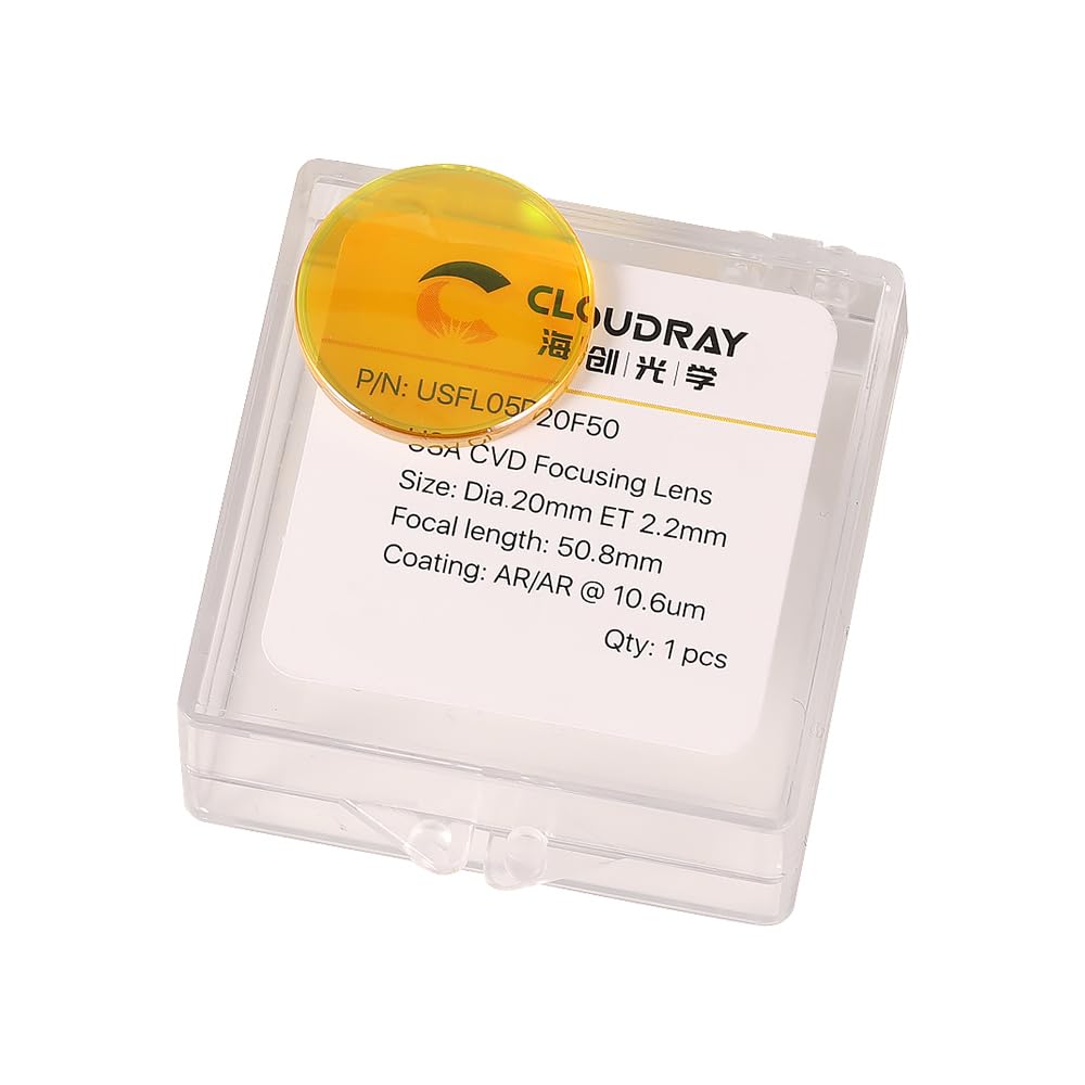 Cloudray CO2 Laser Lens 20mm Mirror CO2 Laser Focal Lens CO2 Focus Lens, CVD ZnSe for CO2 Laser Engraving Machine Cutter 40W-200W,Dia 20mm FL50.8mm Sale