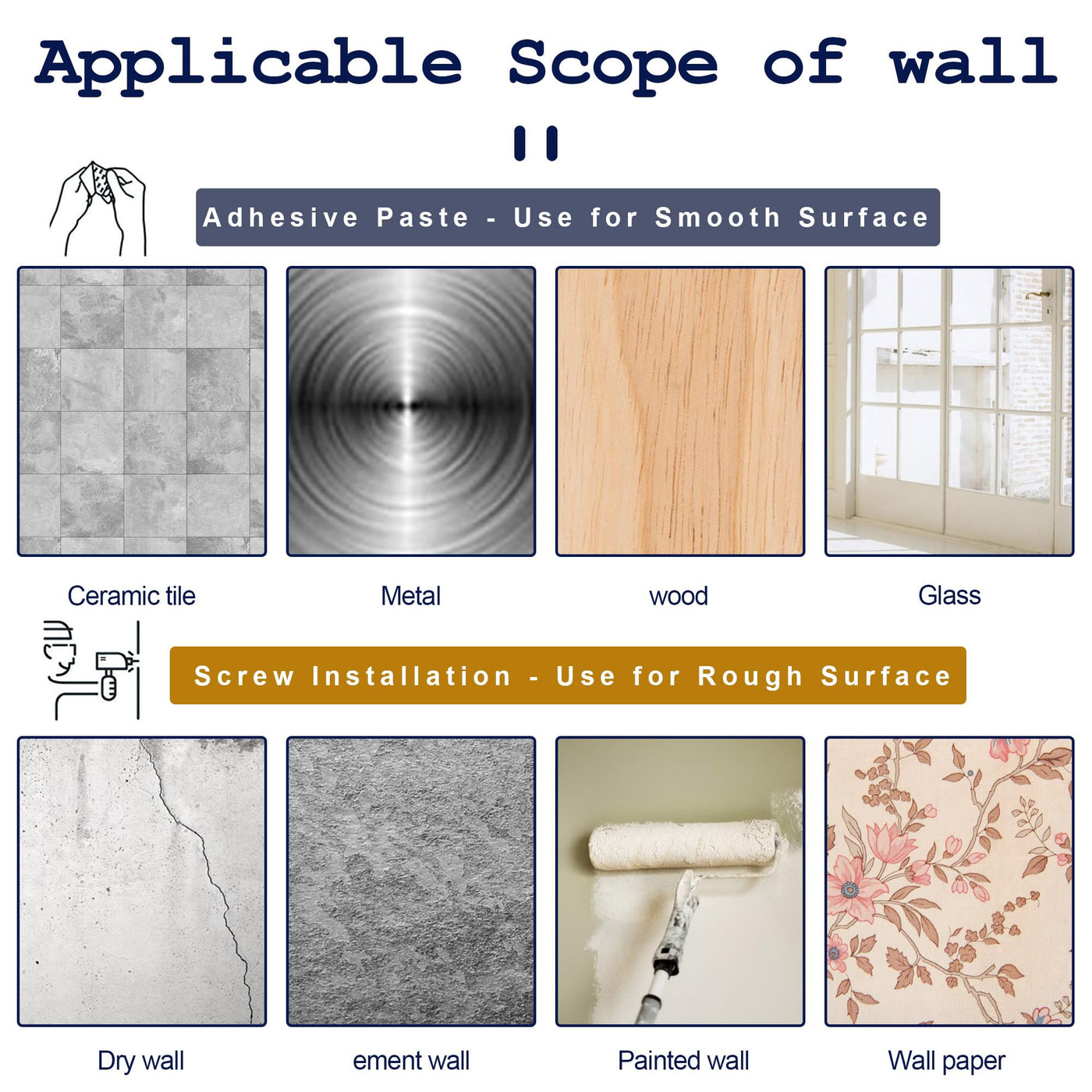 - 【Wide Range of Uses】This adhesive curtain rod holder works great on smooth surfaces like glass, tile, marble, and stainless steel. For textured surfaces like drywall, concrete, or painted walls, use screws for a secure hold