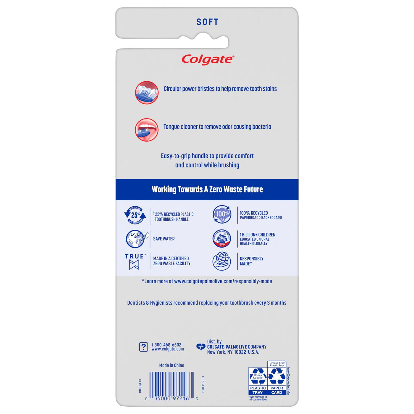 - Soft toothbrush features circular power bristles to help effectively clean teeth