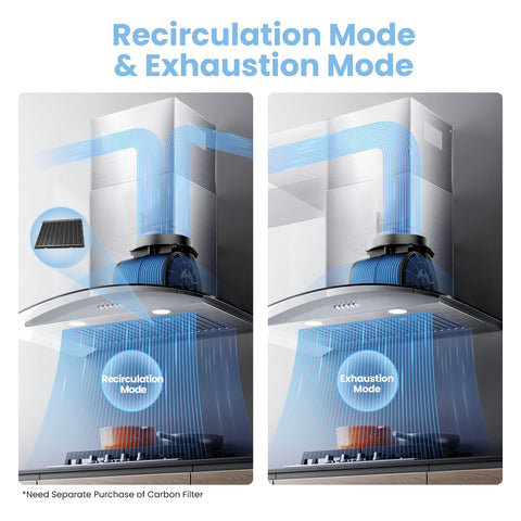 COMFEE' CVG30W8AST 30 Inches Ducted Wall Mount Vent Range Hood with 450 CFM 3 Speed Exhaust Fan, Baffle Filters, Curved Glass, 2 LED Lights, Convertible to Ductless, Stainless Steel