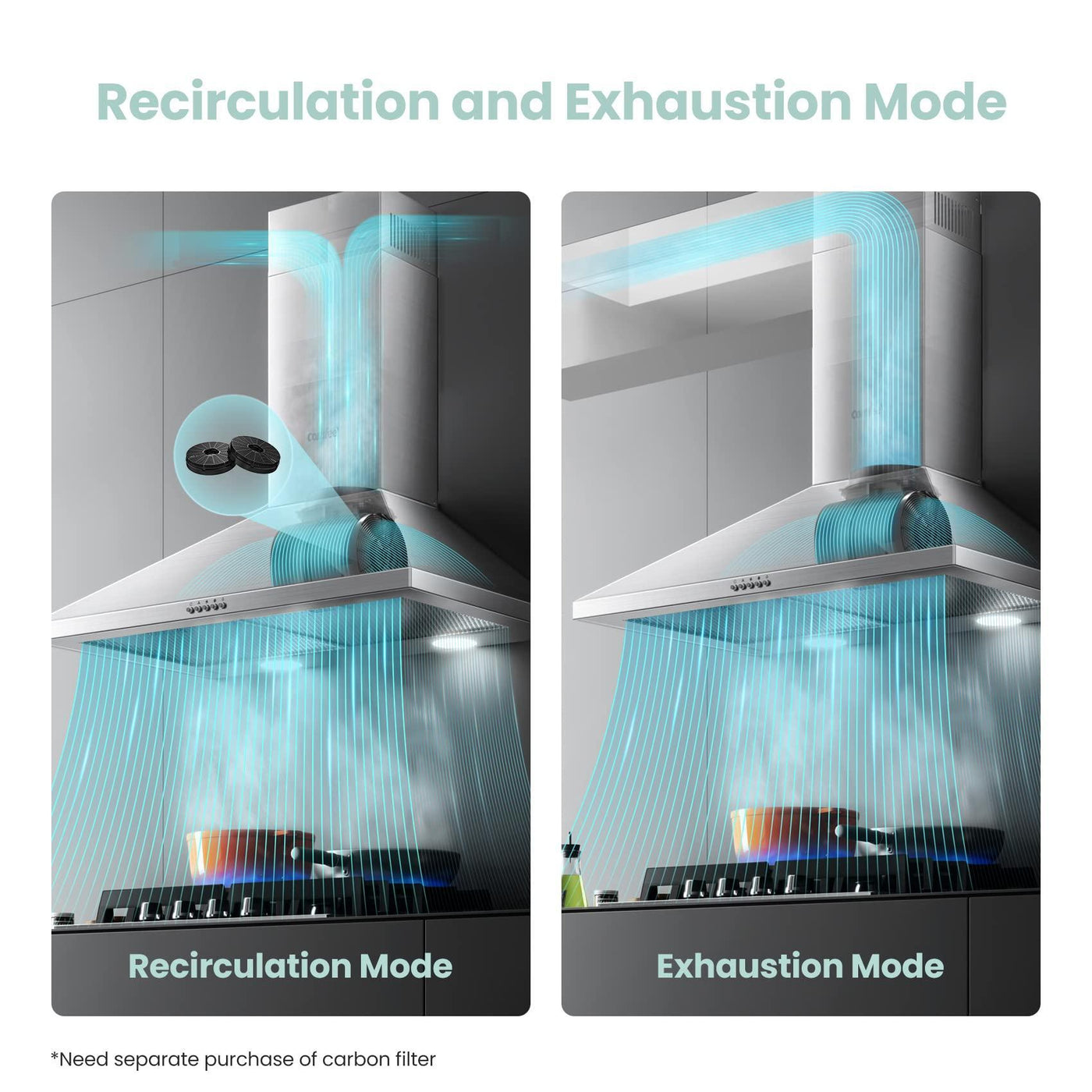 - INSTALLATION: For installation you may follow the step-by-step instructions in the user manual or reference the Comfee installation videos. Or you may choose to have the installation and electrical wiring done by qualified professionals. Please use 6 inch (150mm) diameter exhaust duct. If you would like to convert your range hood to ductless, you will need to purchase The Comfee 2 Pack Carbon Filter Kit separately: Part # CVP/CVG-CF (Please search B09C74226L on Amazon.)