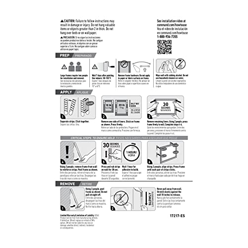 Details: Command White 20 lb XL Heavyweight Picture Hanging Strips let you decorate how you want, when you want, without damaging surfaces. A great home improvement item, these picture hangers stick on a variety of smooth surfaces without leaving holes, marks or sticky residue. Use these wall hanging strips to hang heavy duty picture frames, large wall art, big mirrors, wall clocks, signs, dry erase boards, holiday decorations and other home decor. XL picture hanging strips bond to a variety of smooth surfaces that include painted walls, painted cinderblock and concrete surfaces for damage free hanging. Perfect for home renovators and students, use Command Picture Hanging Strips in your home, office or dorm to elevate the appearance of your living or working space without tools. Directions are included; follow the directions closely to use the 3M Wall Hanging Strips as intended. A clever decorating solution that doesn’t damage surfaces, these wall hanger strips will help you fearlessly change your space. One package contains eight pairs of heavy duty x-large White picture hanging strips. Four pairs (eight wall hanger strips) holds up to 20 pounds with a maximum frame size of 24 x 36 inches. Decorate, organize and celebrate damage-free with Command.