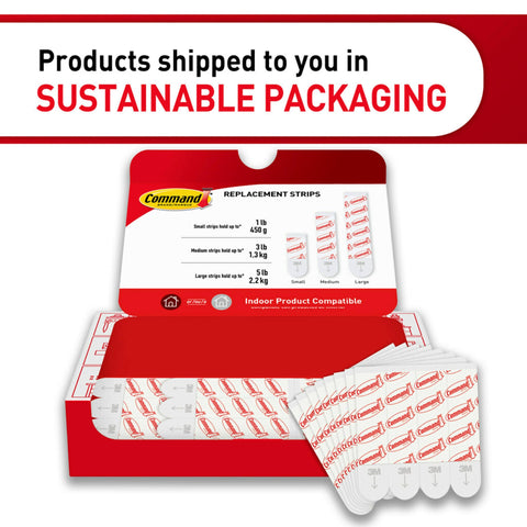 Details: Command Replacement Strips make it easy to move and rehang your Command Products to reorganize or redecorate your home. For reuse with Command Medium indoor plastic and metallic hooks. For indoor use only. Command Replacement Strips come in mini, small, medium and large sizes.