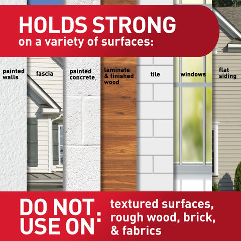 - WORKS ON A VARIETY OF SMOOTH OUTDOOR SURFACES: Outdoor string lights bond to doors, flat vinyl siding, soffits, finished fences, tile, painted cinder block and windows