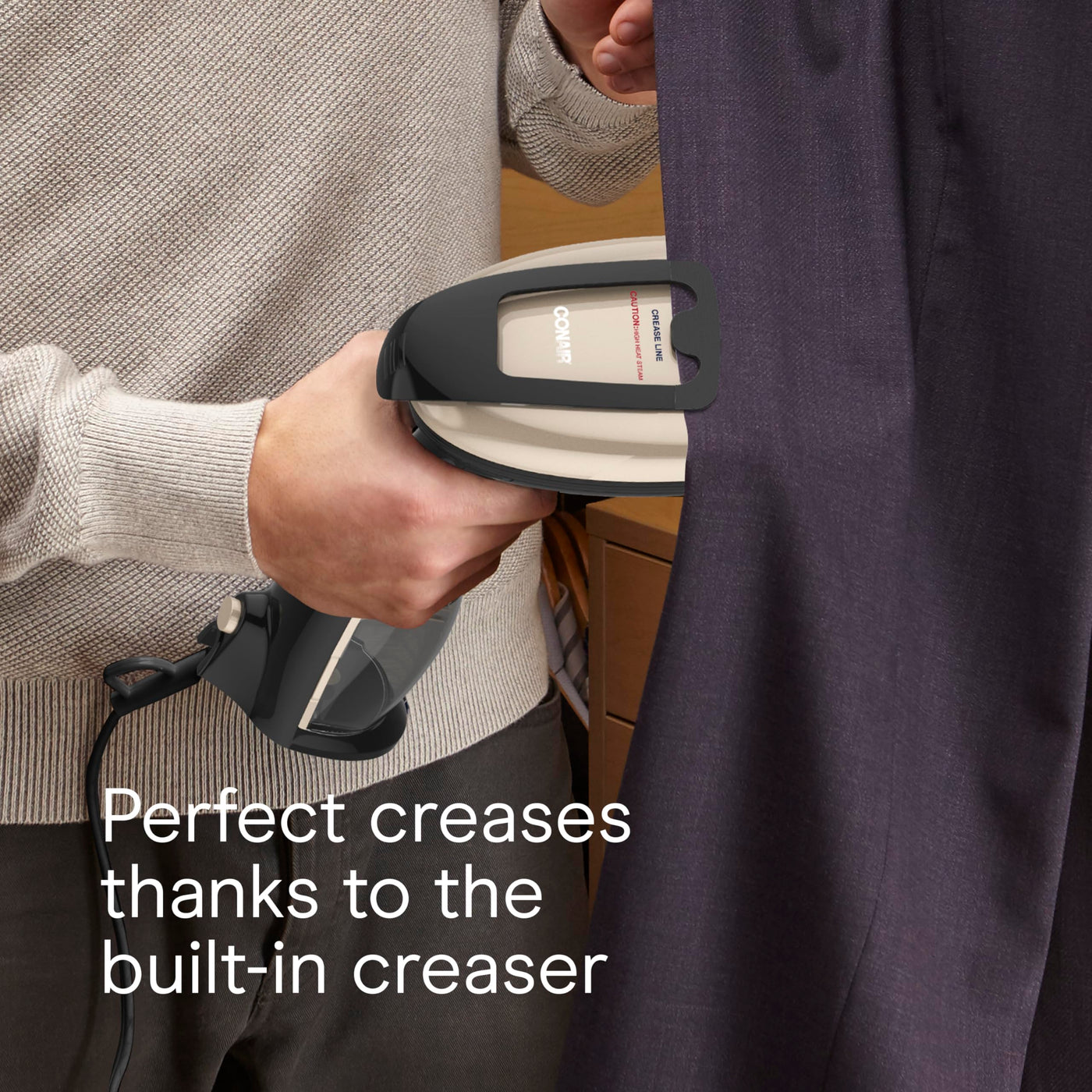 - TURBO STEAM POWER: Turn up the heat with this Conair Fabric Steamer that combines the performance of an iron with the power of steam to instantly smooth out wrinkles in clothing and upholstery.