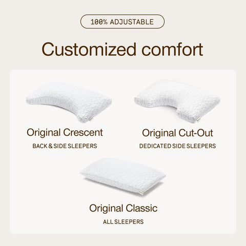 - Fully Adjustable to Your Comfort: Coop’s Original Pillow is fully adjustable. Simply add or remove memory foam fill to achieve your desired firmness—remove fill for a softer feel or add more for a firmer one. Keep in mind that cooler environments may cause the foam to feel firmer, so adjust accordingly. Whether you’re a back, side, or stomach sleeper, you can create the perfect pillow for your sleep style to experience ultimate comfort and support.