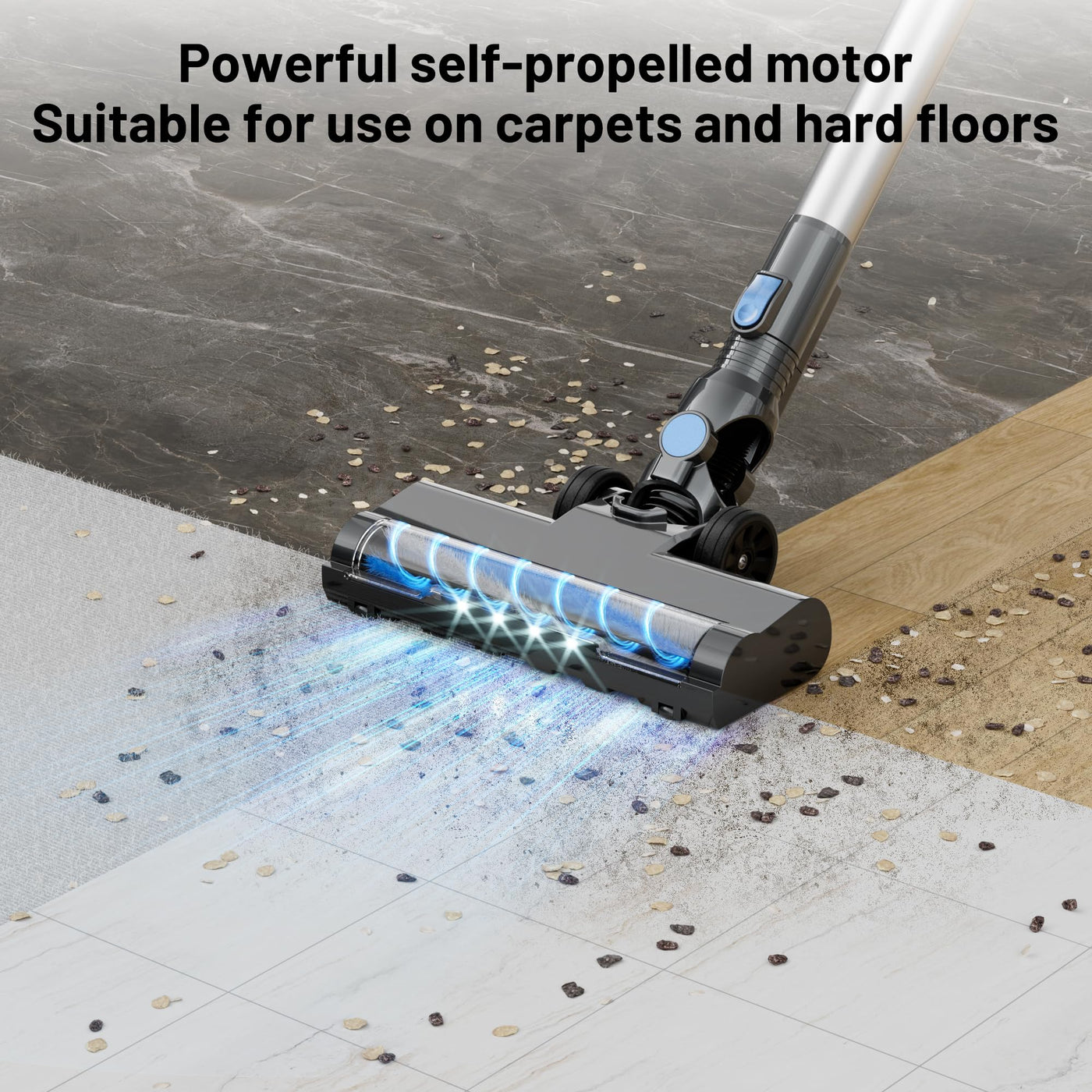 Cordless Vacuum Cleaner with Self-Standing, LED Screen Stick Vacuum Cleaners for Home, Lightweight Powerful Suction Vacuum, 6-in-1 Rechargeable Vacuum for Carpets, Pet Hair, Hardwood Floors