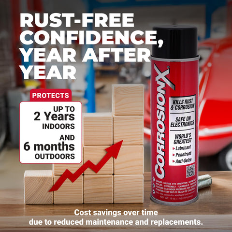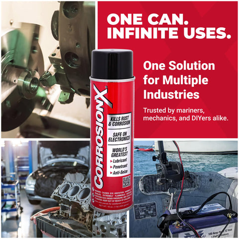 CorrosionX Rust Inhibitor, Industrial-Strength Dielectric Corrosion Prevention, Lubricant & Penetrant for Marine, Automotive, Electronics & RV Use, Protects Bolts, Cables, Engines, Parts, 16oz Aerosol