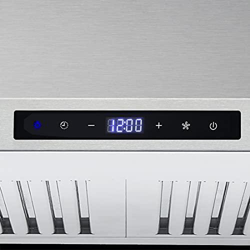 - SOFT TOUCH CONTROLS: Range hood equipped with soft touch control panel to manage multiple functions, including fan speed, lights and power