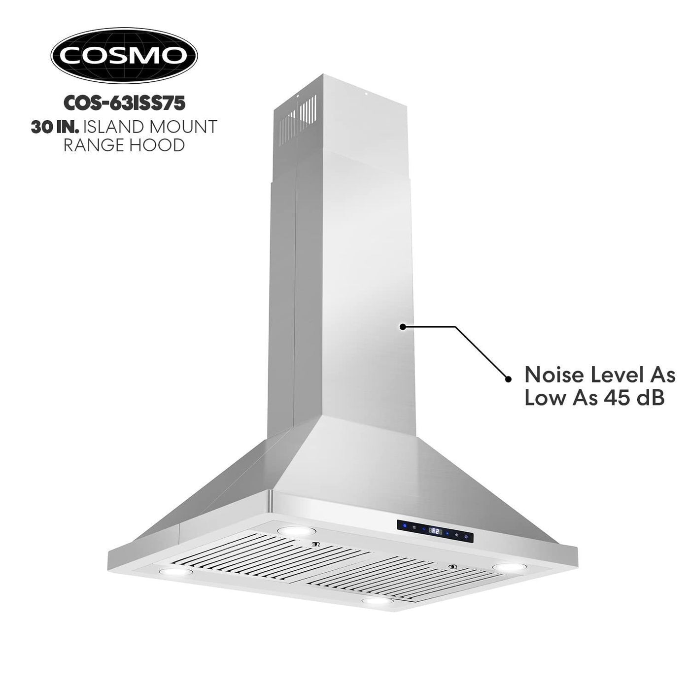 COSMO COS-63ISS75 30 in. Lumin Collection 380 CFM Ducted Island Range Hood, Soft Touch Controls, LED Lights, Stainless Steel