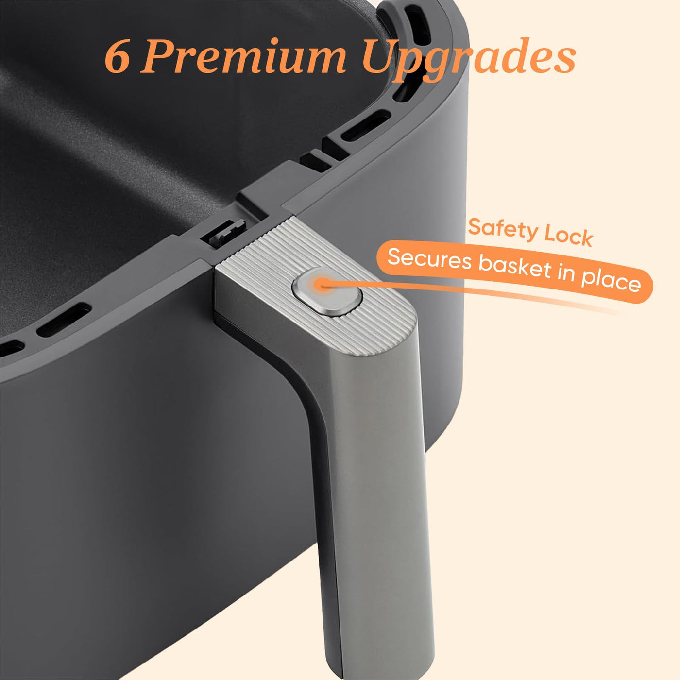 TurboBlaze Technology: This innovative 5-speed airflow system ensures your food is evenly cooked, delivering perfectly crispy and tender results every time in just minutes. Meanwhile, the cutting-edge design of the motor includes a soft start feature, making the operating noise quieter. Experience the revolutionary technology that change everyone's cooking life.