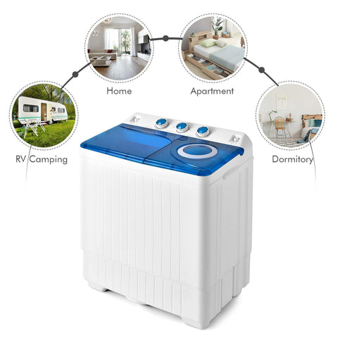 COSTWAY, Twin Tub 26lbs Capacity Laundry, 18lbs 8lbs Spinner Combo with Timer Knobs, Built-in Drain Pump, Compact Washer for Home Dorm Apartment (Blue+White) portable washing machine Sale