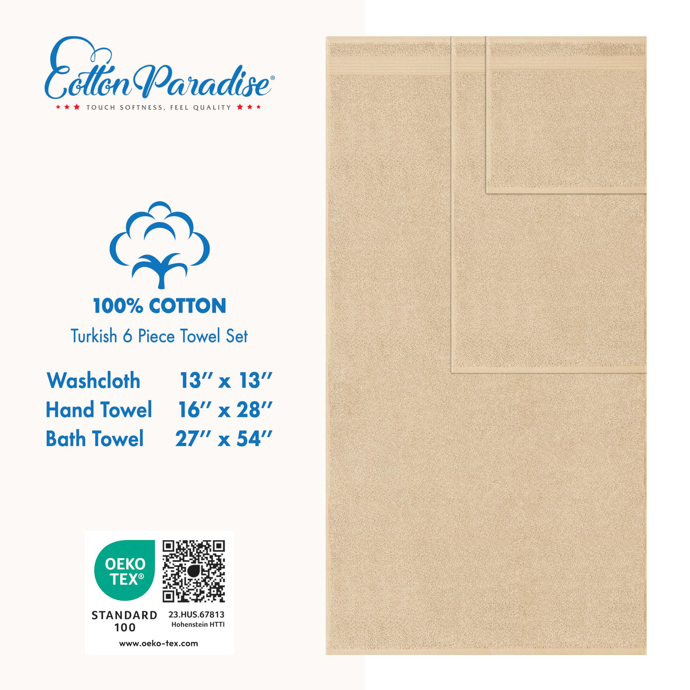 Cotton Paradise 6 Piece Towel Set, 100% Cotton Soft Absorbent Turkish Towels for Bathroom, 2 Bath Towels 2 Hand Towels 2 Washcloths, Beige Towel Set