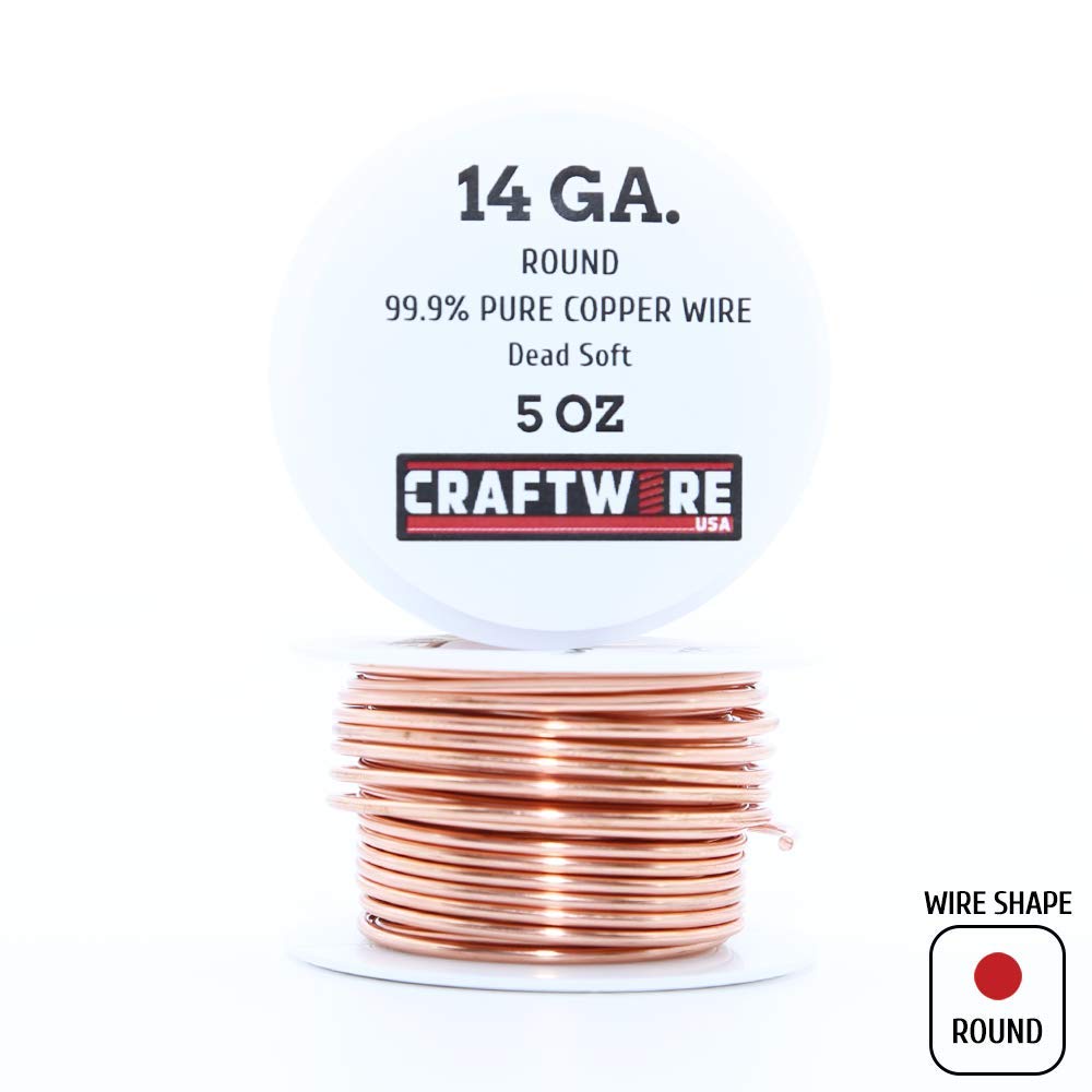 Craftwire USA Solid Bare Copper Wire Round, Bright, Dead Soft, 28 Feet, 5OZ 14 Gauge (Choose 10 to 30 ga.)