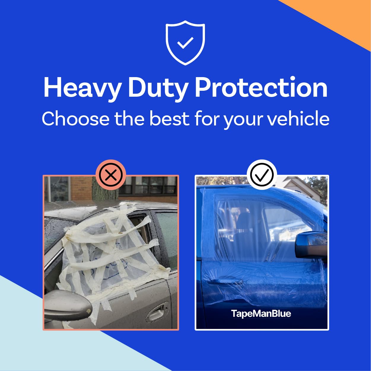 - EASY-TO-USE CRASH FILM: Our crash car wrap is designed for quick and simple application. This user-friendly crash tape requires no special tools or skills. Simply unroll the self-adhesive collision wrap and apply it to broken car windows or damaged body panels. The material easily conforms to various surfaces, so it’s perfect as a temporary broken car window cover or to shield larger areas needing protection. TapeManBlue crash tape for vehicles provides hassle-free, immediate protection.
