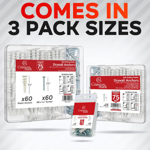 CrimsonMark 120Pcs #8 Self Drilling Drywall Anchors and Screws kit #8 x 1-1/4”- Superb Wall Anchors for Drywall, Holds Upto 75lbs – No Drill Hole Required with These Dry Wall Screws and Anchors Sale