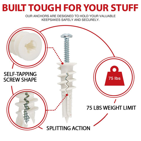 CrimsonMark 120Pcs #8 Self Drilling Drywall Anchors and Screws kit #8 x 1-1/4”- Superb Wall Anchors for Drywall, Holds Upto 75lbs – No Drill Hole Required with These Dry Wall Screws and Anchors