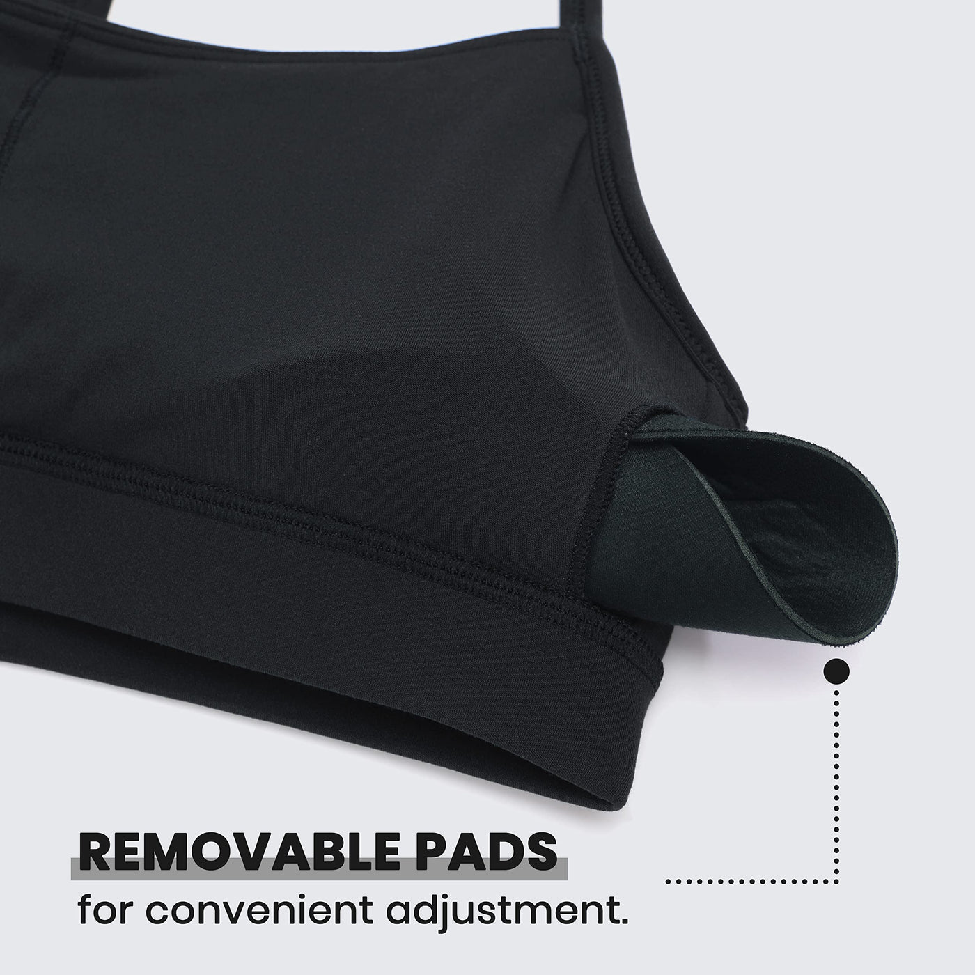 CRZ YOGA Butterluxe Womens Y Back Sports Bra - Padded Racerback Low Impact Spaghetti Thin Strap Workout Yoga Top Black Medium