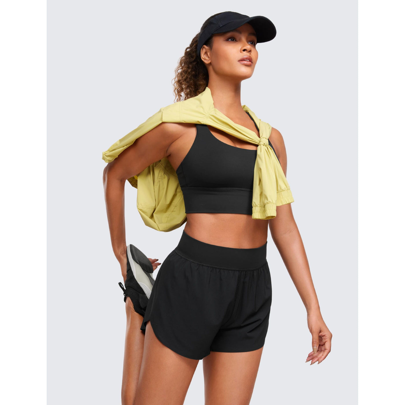 CRZ YOGA High Waisted Dolphin Athletic Running Shorts for Women 3" High Split Comfy Mesh Liner for Gym Workout Track Black Medium Sale