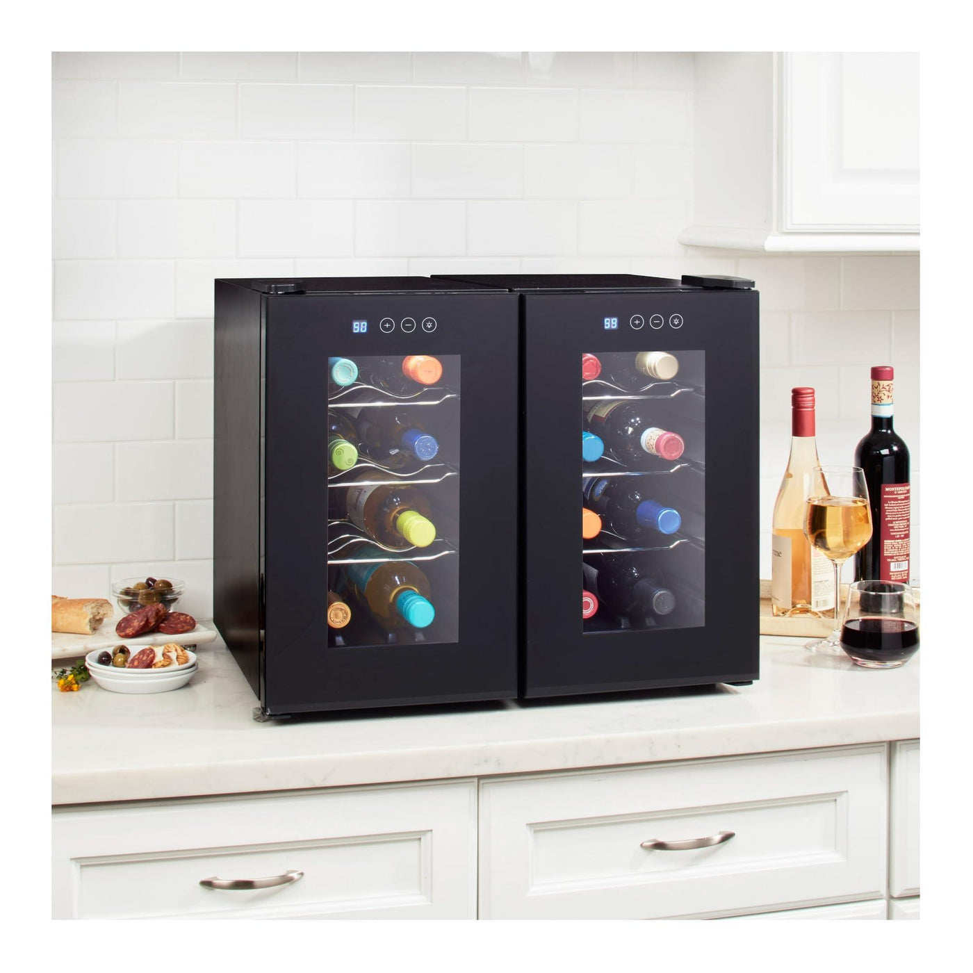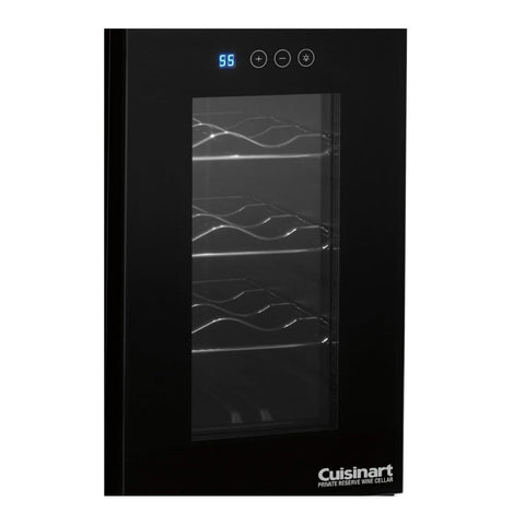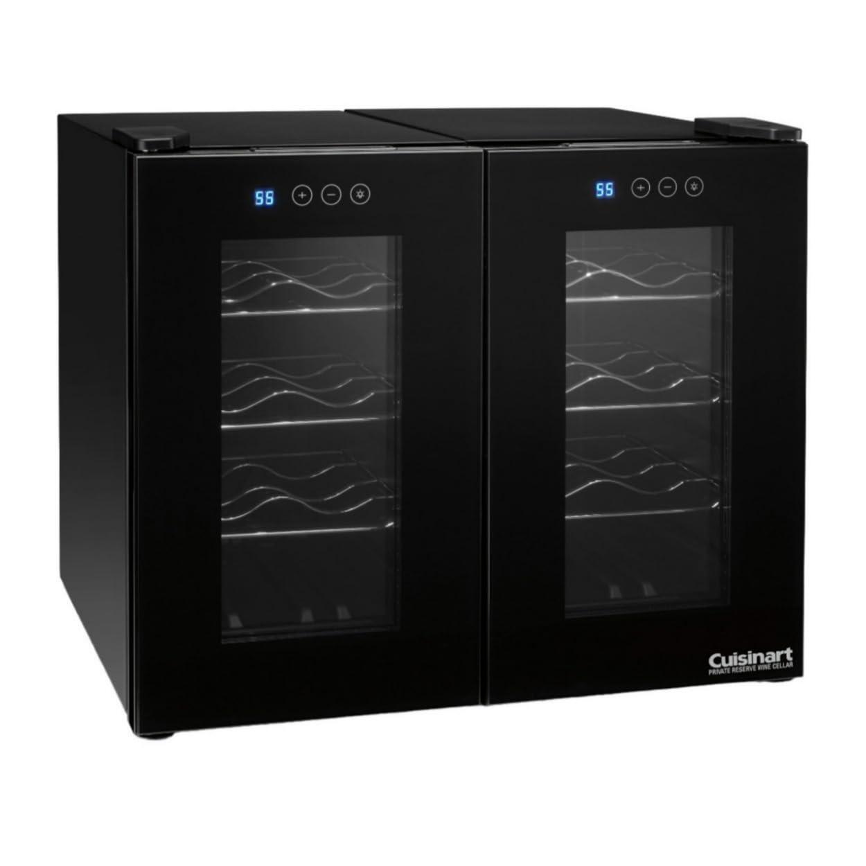 Details: The Cuisinart® 16-Bottle Private Reserve Wine Cellar combines technological sophistication with ease and convenience. Designed to fit on the countertop, this compact, slim-line wine cellar cradles up to 16 bottles of wine or Champagne on contoured chrome racks. The two thermoelectric, compressor-free cooling systems chill quietly and efficiently. Touchscreen controls on each outer door let you select settings from 39°F to 68°F for dual-zone cooling at two different temperatures.
