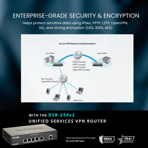 - ENTERPRISE-GRADE SECURITY & ENCRYPTION: Helps protect sensitive data using IPSec, PPTP, L2TP, OpenVPN, SSL, and strong encryption (DES, 3DES, AES), reducing risk from external threats in an increasingly digital landscape