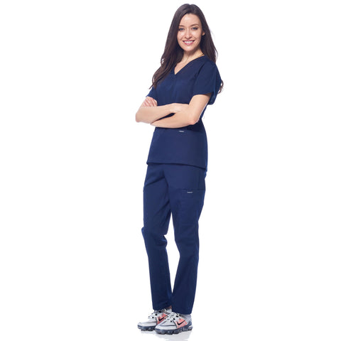 Dagacci Medical Uniform Womens and Mens Scrub Set Unisex Medical Scrub Shirt Top and Pant, Navy, Medium Sale