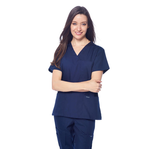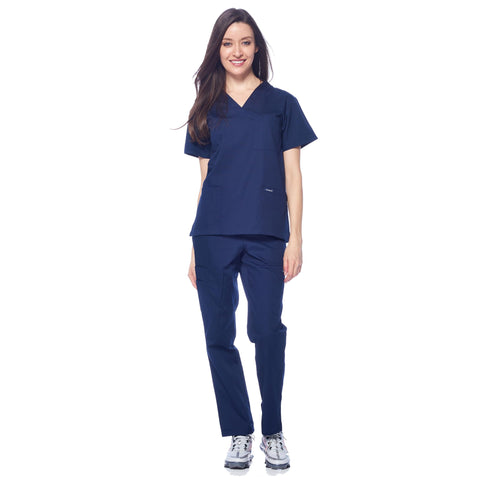 Dagacci Medical Uniform Womens and Mens Scrub Set Unisex Medical Scrub Shirt Top and Pant, Navy, Medium