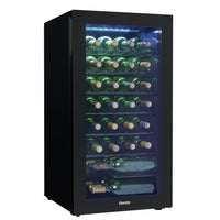 - 3.3 Cubic Feet (93.4 Liters) Free Standing Wine Cooler: This mini wine cooler generously stores up to 36 bottles of your favorite wines