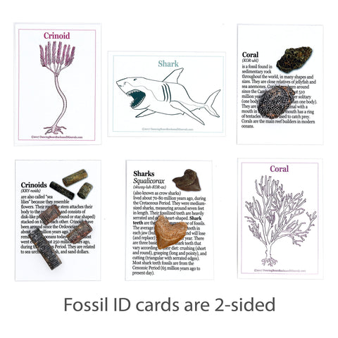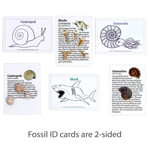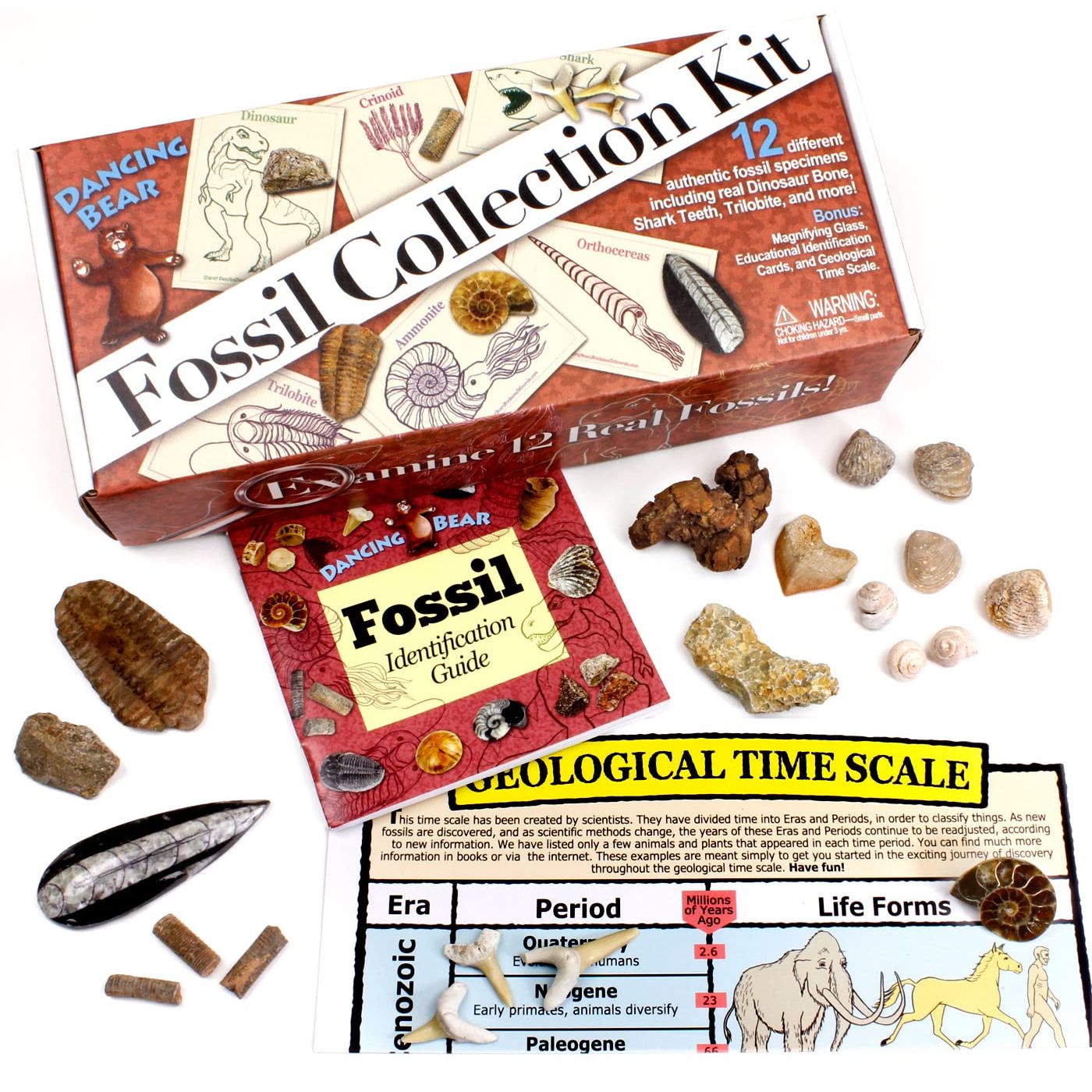 - BONUS: Fossil ID Book, Magnifying Glass and newly designed Geological Time Scale chart!