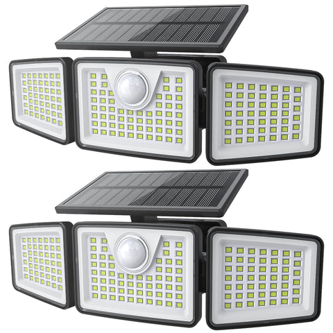 - 【Super Bright Solar Motion Sensor Outdoor Lights】The outdoor solar commercial street & area lights adopts newly upgraded LEDs, made of 99.99% pure gold wire, with stronger welding, better thermal conductivity, wider light emission range. It can produce a high brightness output of up to 2500LM 6500K and good heat dissipation effect, providing the brightest and most saturated light. It is the best choice of solar outdoor lights for your patio front door, yard, and garage!