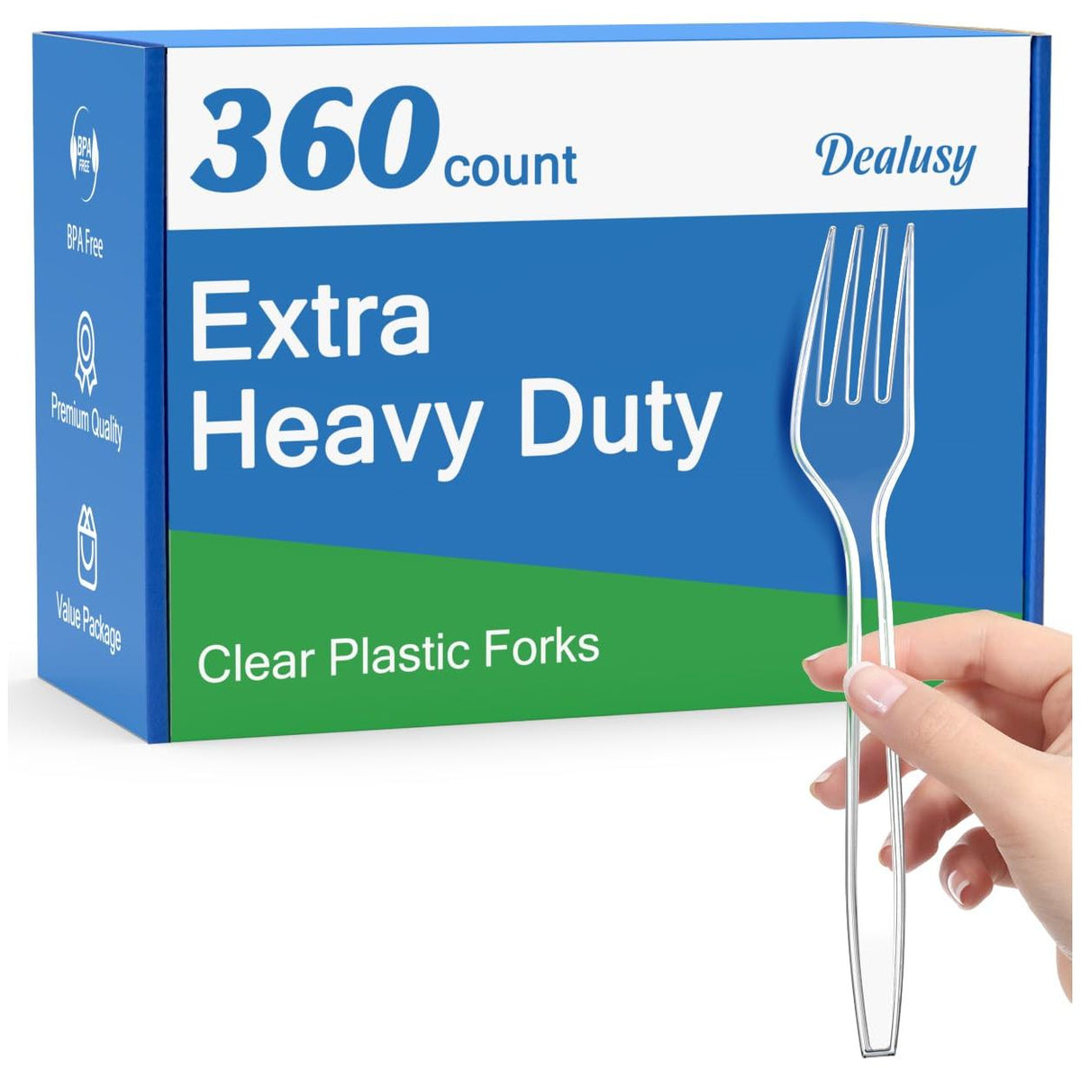 Dealusy 360 Count Extra Heavy Duty Clear Plastic Forks Disposable, BPA-Free, Heat Resistant, Solid and Durable Disposable Forks Bulk, Premium Plastic Forks heavy duty for Party Supply Sale