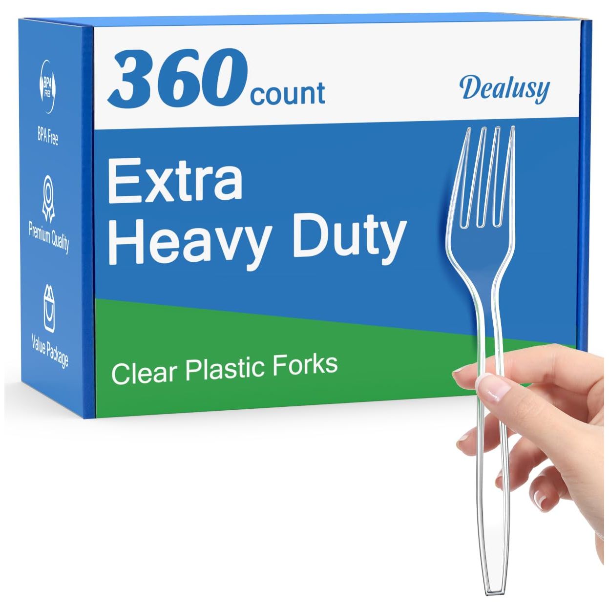 Dealusy 360 Count Extra Heavy Duty Clear Plastic Forks Disposable, BPA-Free, Heat Resistant, Solid and Durable Disposable Forks Bulk, Premium Plastic Forks heavy duty for Party Supply