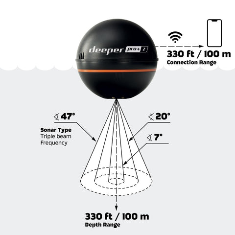 Deeper PRO+ 2 Sonar - Portable Fish Finder and Depth Finder for Kayaks, Boats and Ice Fishing with GPS Enabled | Castable Deeper Sonar with Free User Friendly App
