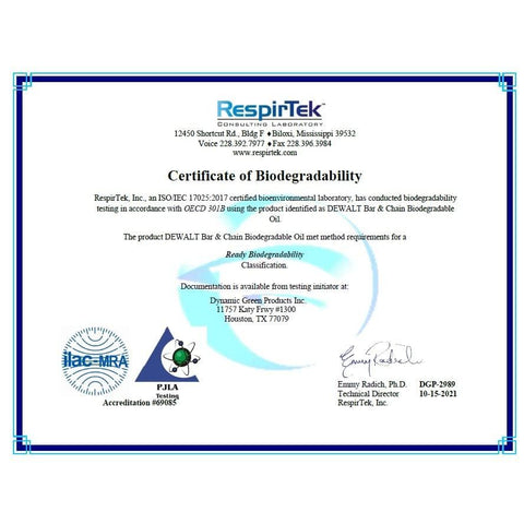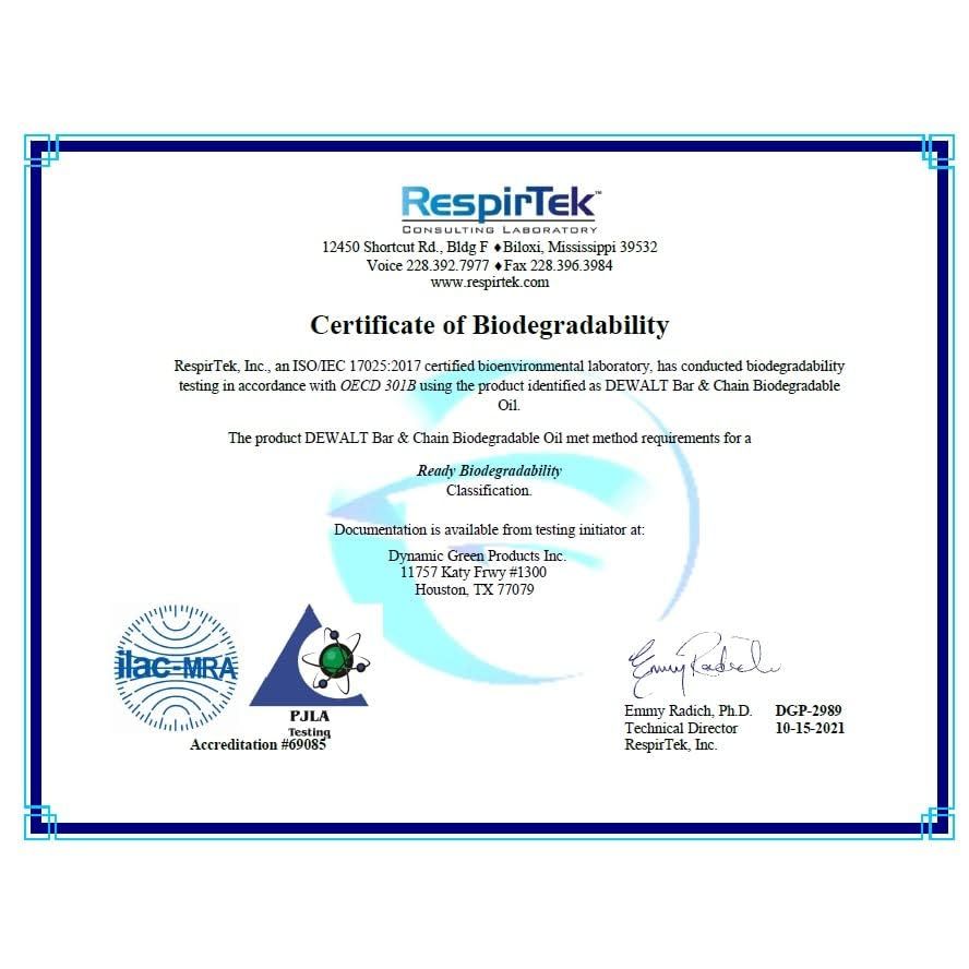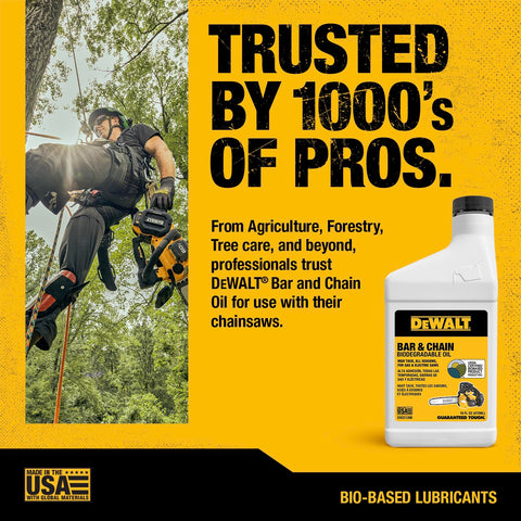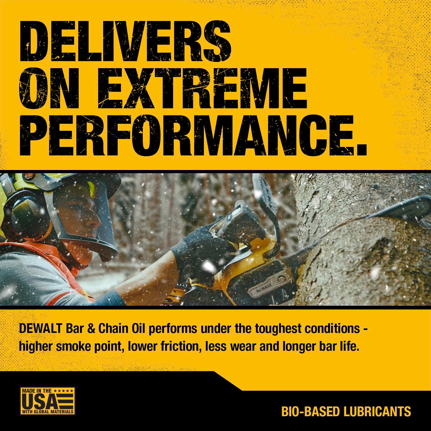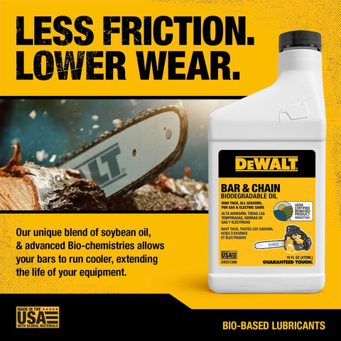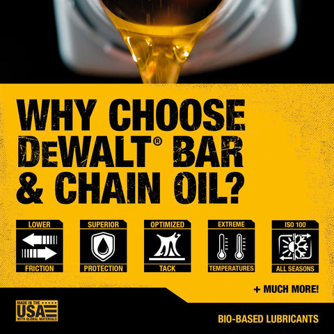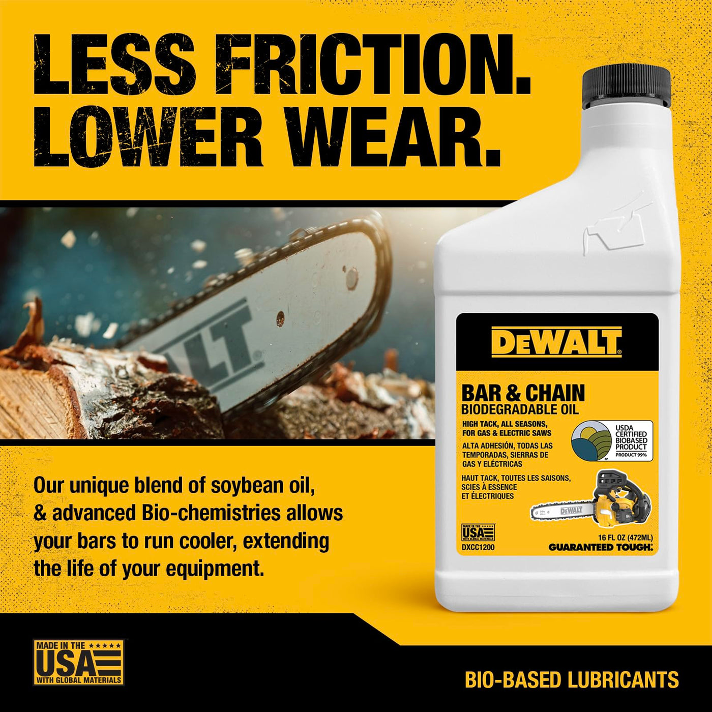 DEWALT – Biodegradable Bar & Chain Oil – Green, Eco-Friendly, Non-Toxic Professional Bar & Chainsaw Lubricant – Ultraclean All-Season Oil for Gas, Electric Saw, and Pole Saw, 16 oz