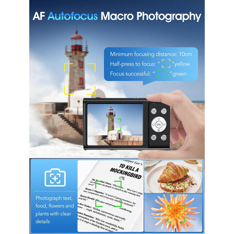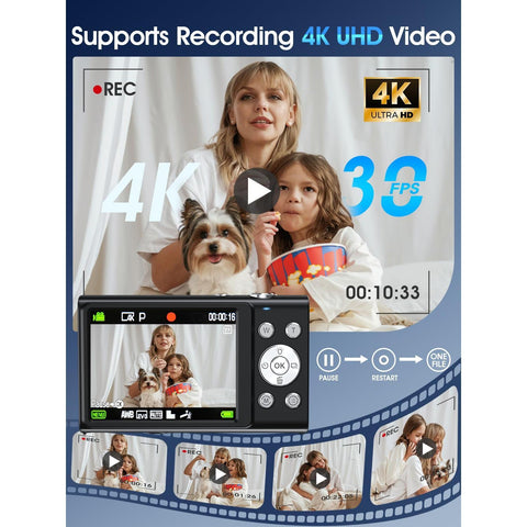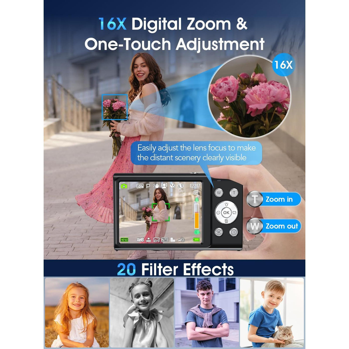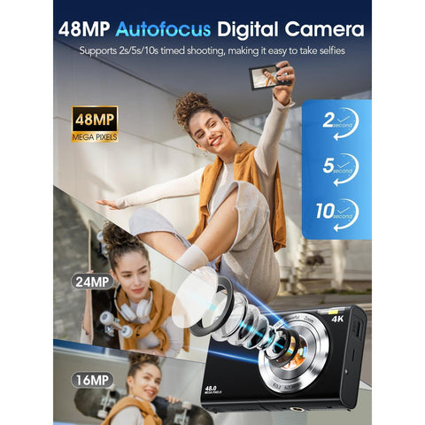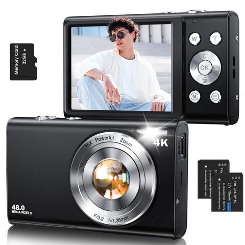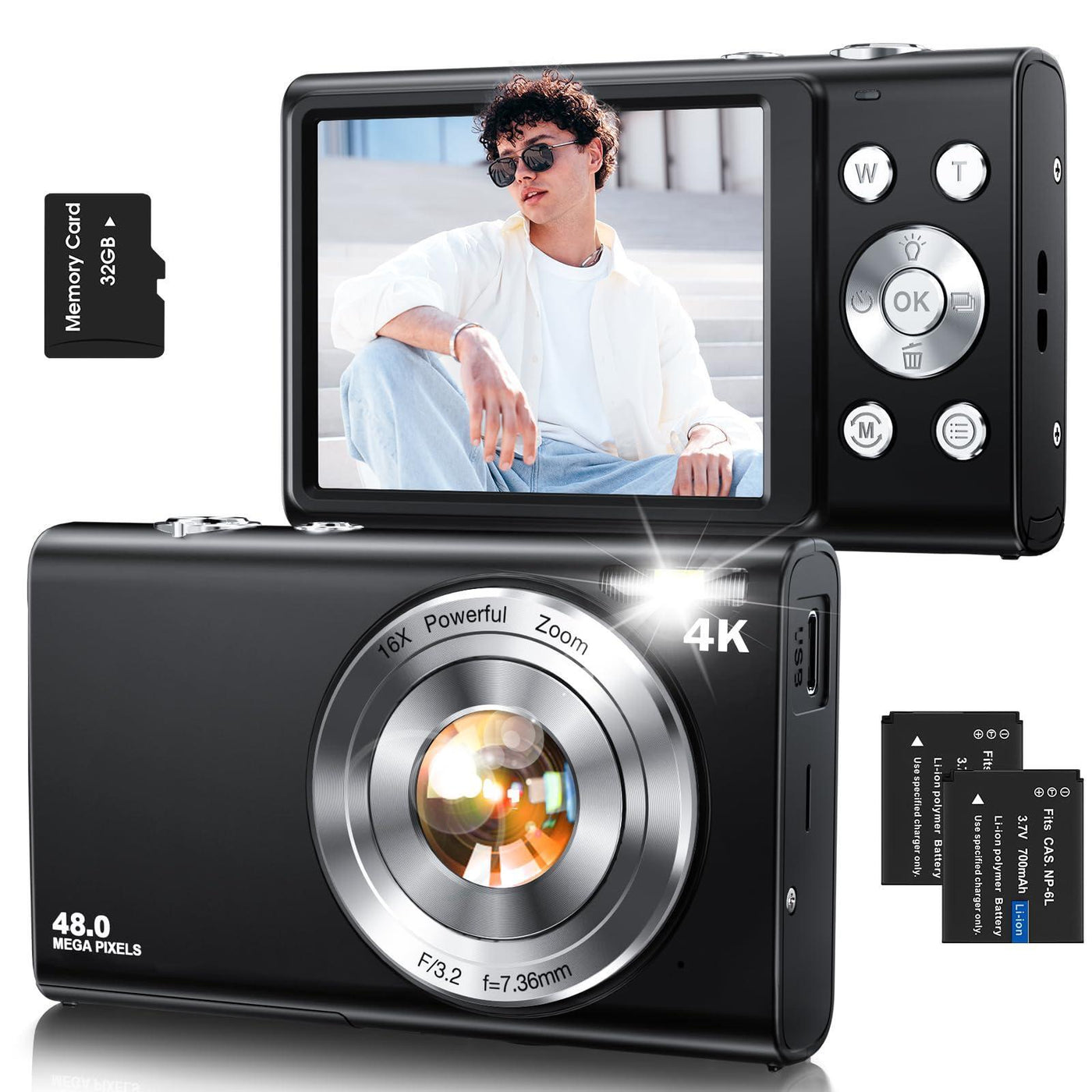 Digital Camera,Autofocus 4K Vlogging Camera for Photography with 32GB Card,48MP Portable Compact Point and Shoot Digital Camera for Teens Adult Beginner with 16X Zoom,Anti-Shake,2 Batteries(Black) Sale