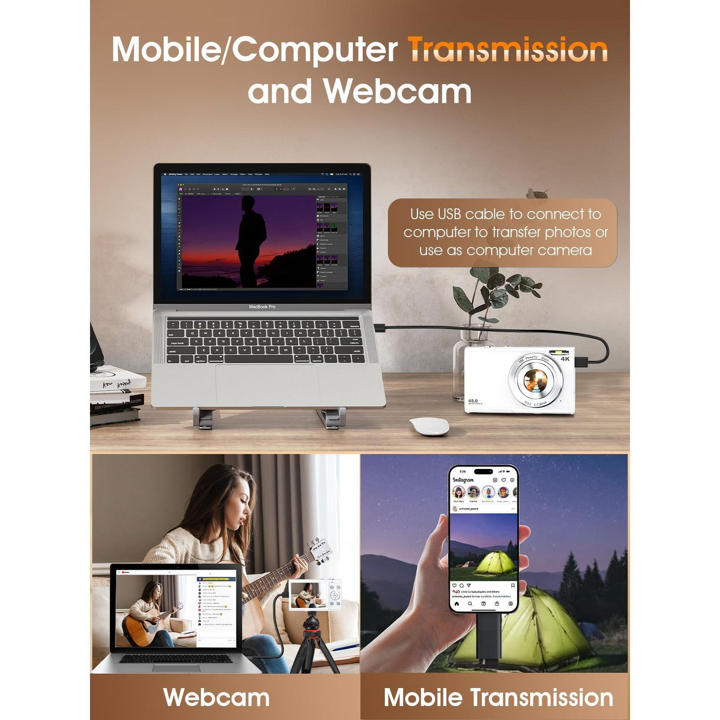 - 【Webcam Function & Record While Charging】 Video calls for work, school, or family gatherings have never been easier. Switch the digital camera to Webcam mode after connecting to your computer, and enjoy smooth video calls or live-stream your experiences with friends and family. Plus, with the ability to record while charging, you don’t need to worry about running out of battery during long recording sessions.