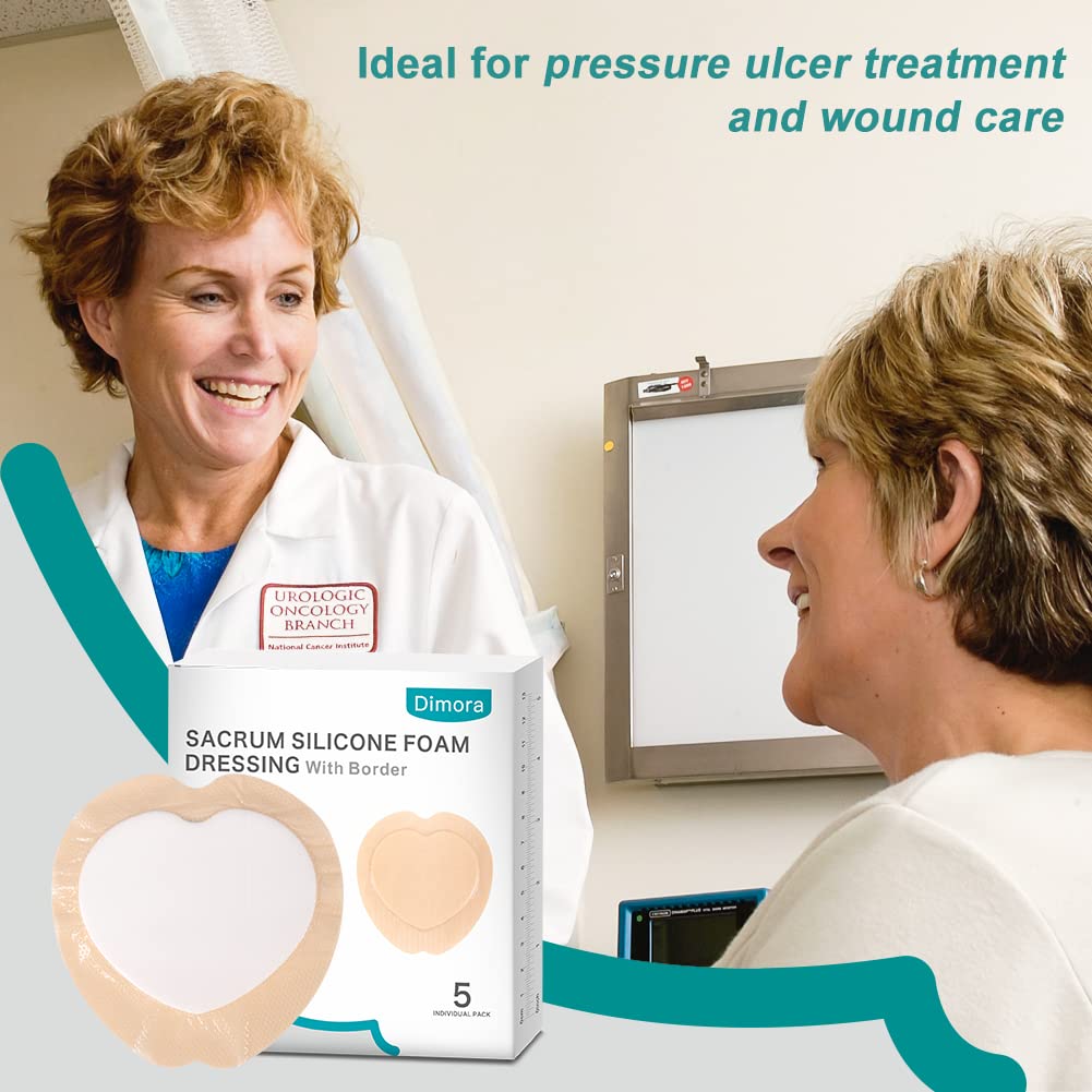 Dimora Wound Dressing Sacrum Foam Bandages Silicone Adhesive Border 7.08"x7.08" Waterproof Sacral Pads Absorbent Breathable Bed Sore Pressure Dressing Sale