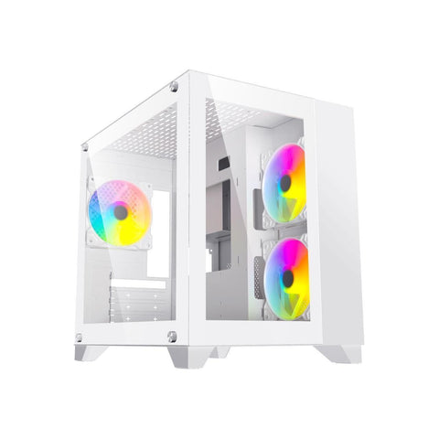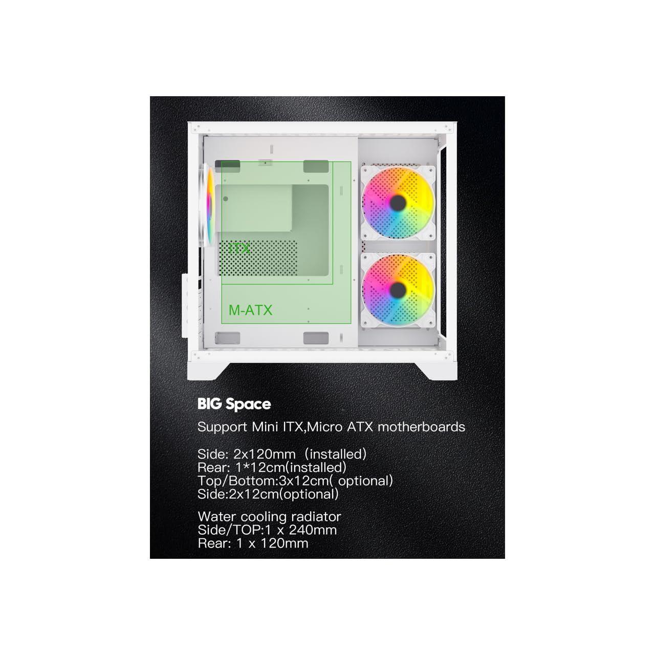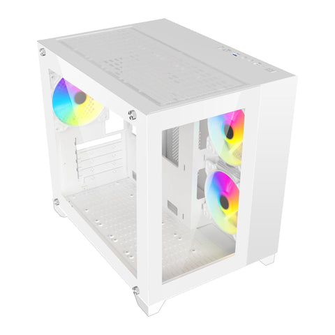 Details: DIYPC ARGB-Q3.R2-W White USB3.0 / Type C Tempered Glass Micro ATX Gaming Computer Case w/ Dual Tempered Glass Panel and 3 x ARGB Fans (Pre-Installed)