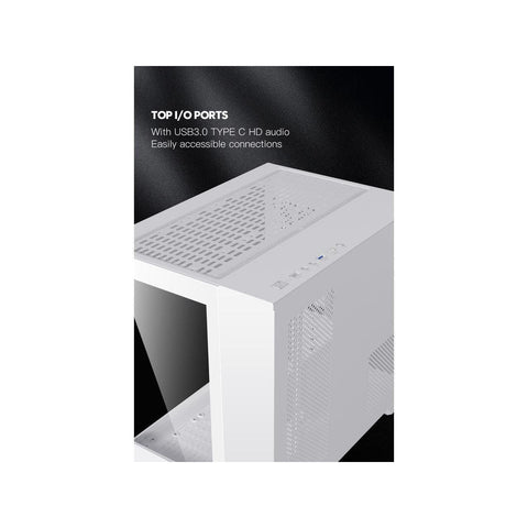 - Panoramic Micro-ATX case with a 270° full view of your masterpiece for building high-performance system. It has 1 x USB 2.0 + 1 x USB 3.0 + 1 x Type C