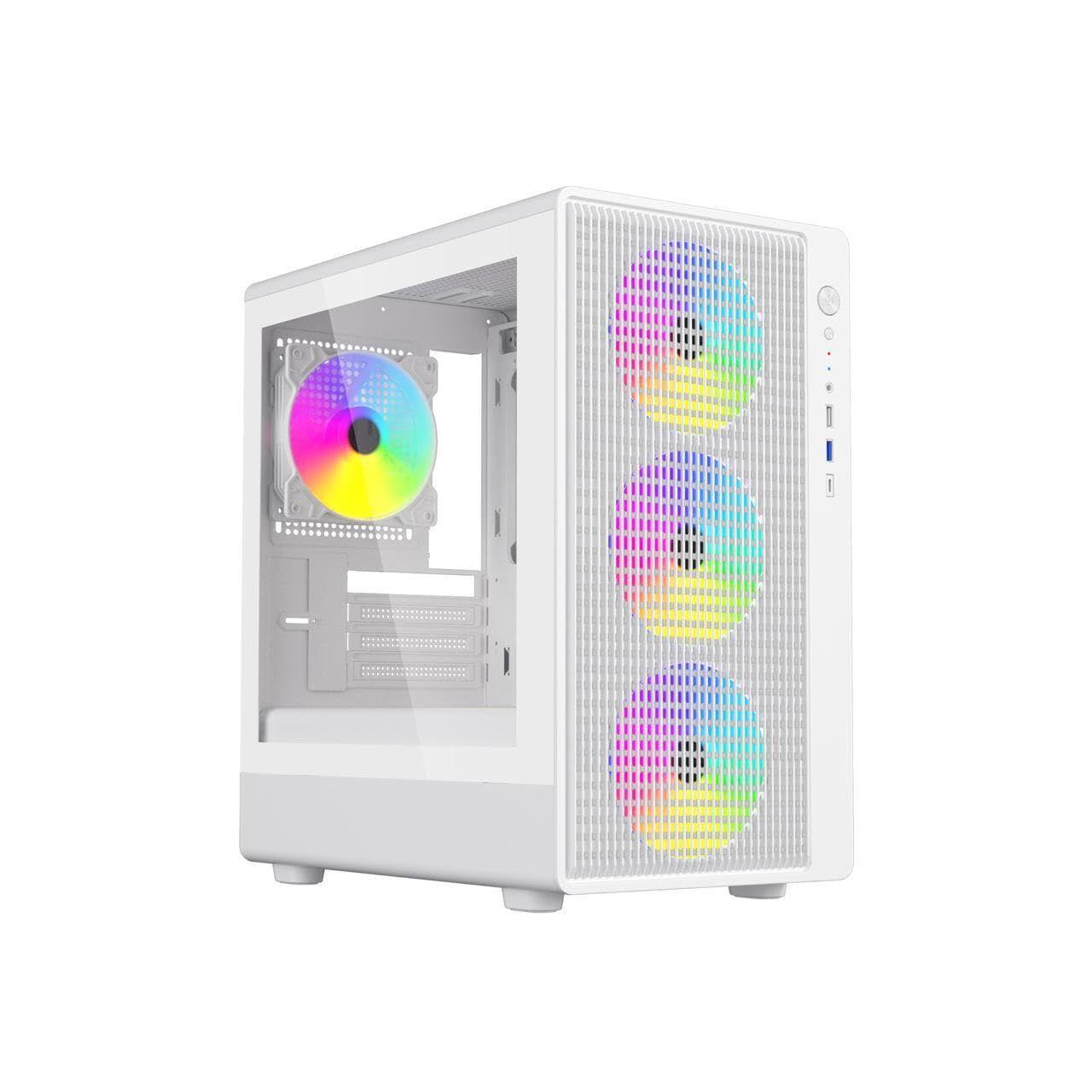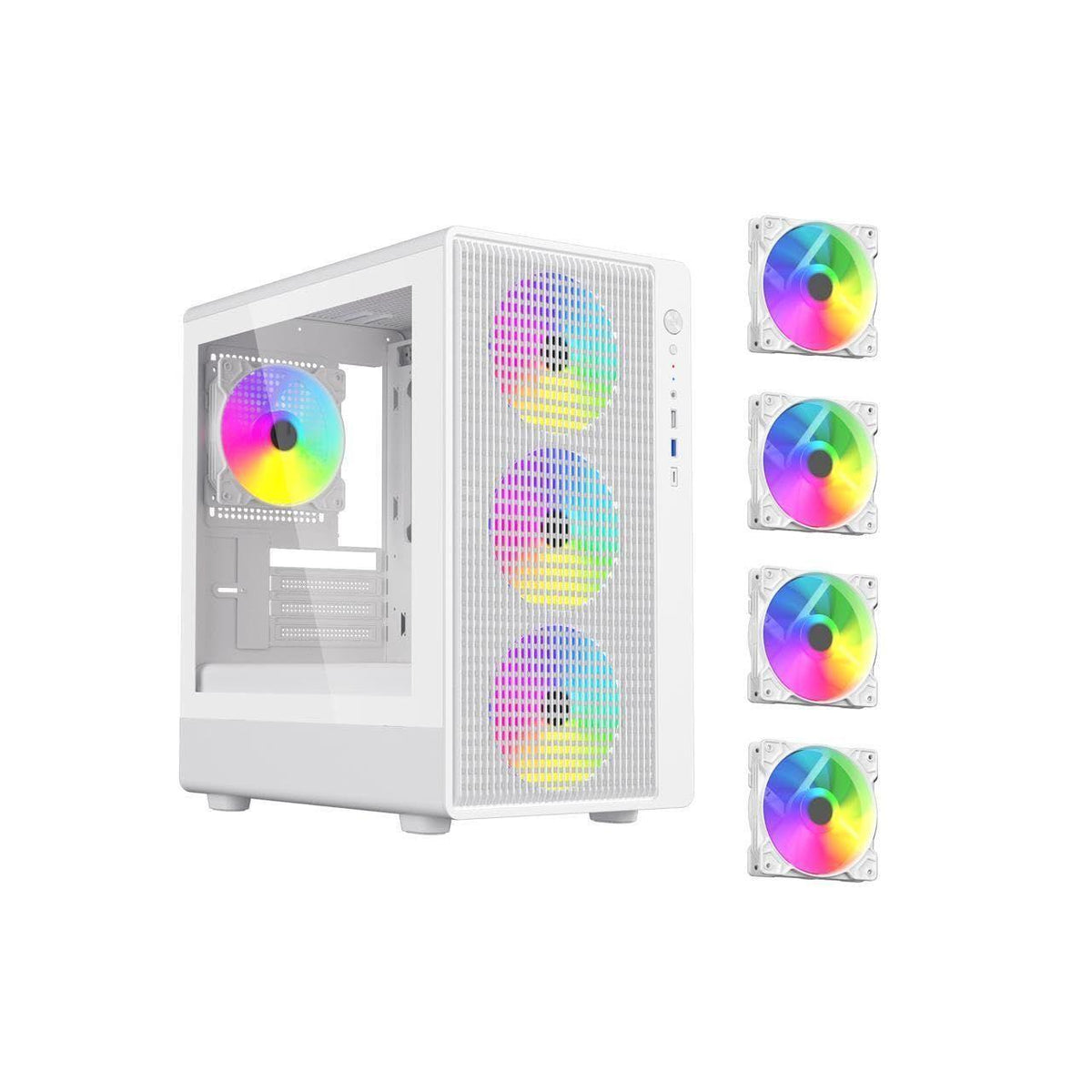 DIYPC ARGB-R1-W White USB3.0 /Type C Micro ATX Gaming Computer Case w/Tempered Glass Panel and 4 x ARGB 120mm Fans (Pre-Installed) Sale