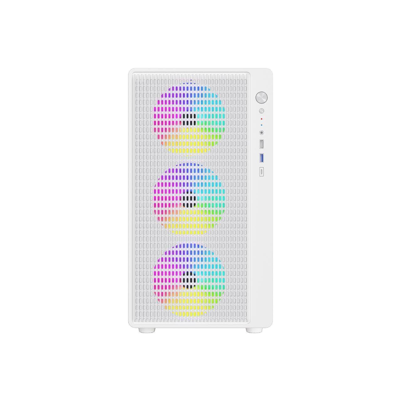 DIYPC ARGB-R1-W White USB3.0 /Type C Micro ATX Gaming Computer Case w/Tempered Glass Panel and 4 x ARGB 120mm Fans (Pre-Installed)