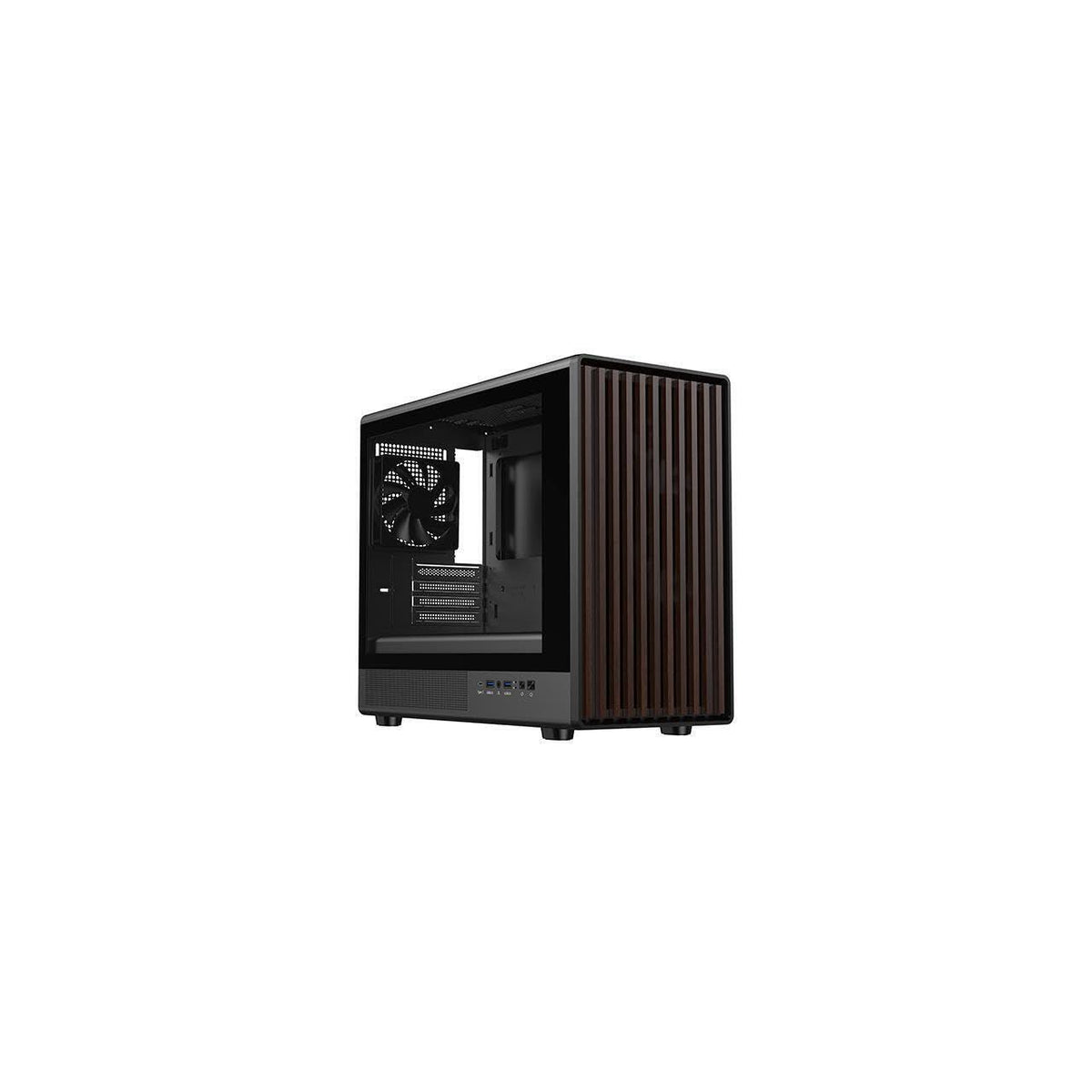 Details: DIYPC DIY-mATX06-Wood Black USB3.0 /Type C Micro ATX Mid Tower Gaming Computer Case w/ Tempered Glass Side Panel and Walnut Wood Front Panel / 4 x PWM Fans Pre-Installed